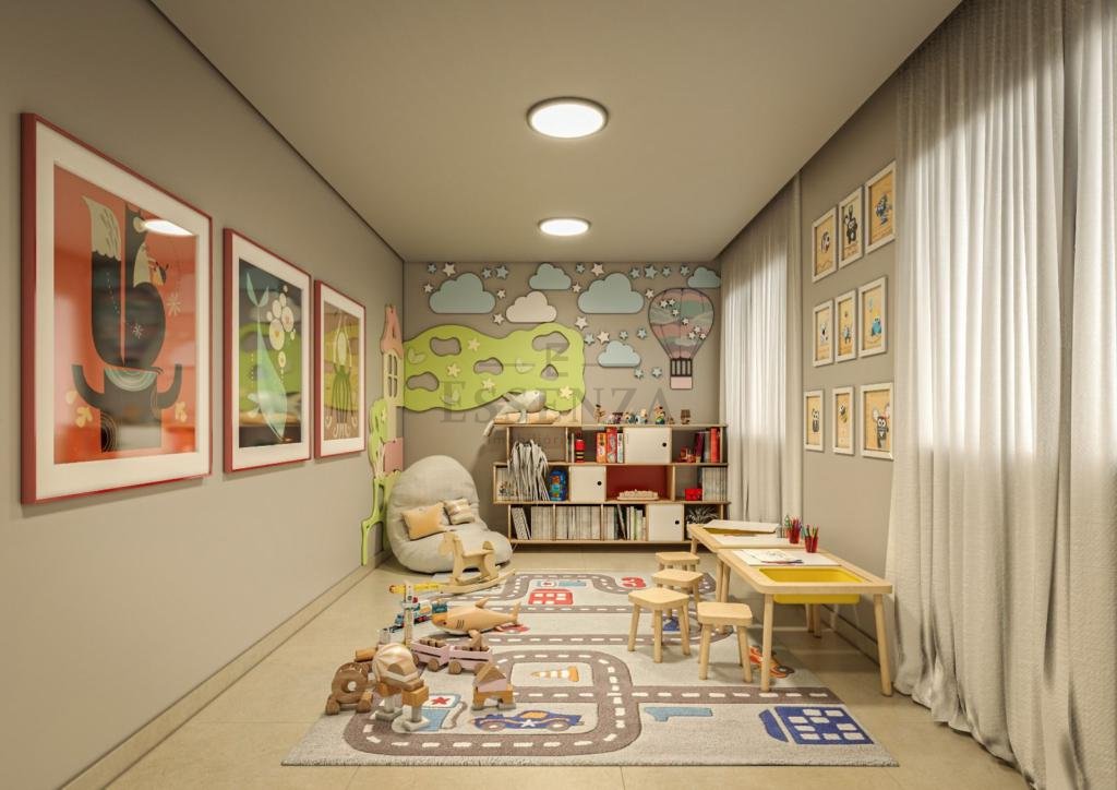 Salão de festas com área gourmet, piscina aquecida com deck, brinquedoteca, sala da jogos espaço coworking.