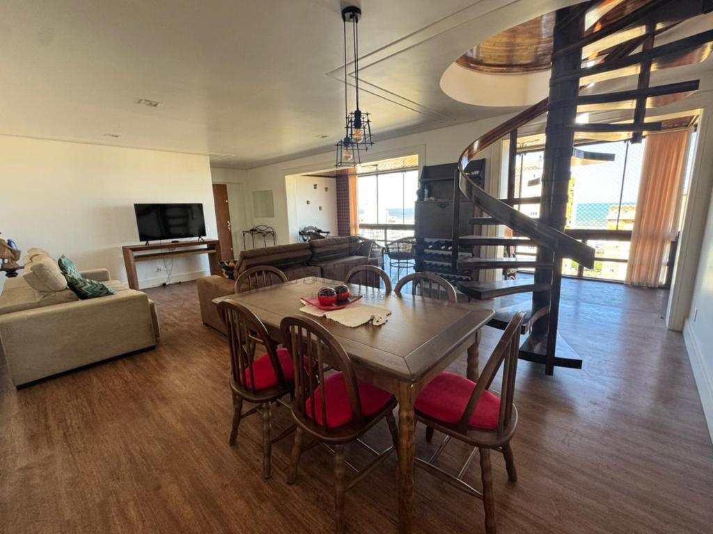 Cobertura Triplex nas Quatro Praças com Vista para a praça e Mar. Localizada em uma das áreas mais privilegiadas de Torres. Com 380 m² de área total, os ambientes foram projetados para proporcionar máximo bem-estar, sofisticação e funcionalidade. O imóvel conta com 04 dormitórios, sendo 03 suítes, seis banheiros, lavabo. Os espaços sociais são amplos e bem distribuídos, sala para três ambientes, estar íntimo, espaço gourmet e um terraço com piscina privativa, perfeito para momentos de lazer e contemplação. Os acabamentos de alto padrão incluem detalhes em gesso, pisos em porcelanato, laminado e cerâmico, além de cozinha planejada, ar-condicionado, aquecimento de água e churrasqueira e 02 vagas.