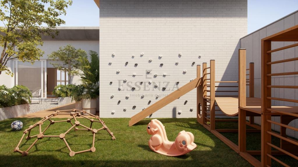 Grande área de lounge com playground e espaço kids no rooftop