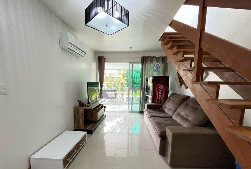 Cobertura dúplex mobiliada em localização privilegiada na Praia Grande, a poucos metros do mar. Com 163,50 m² de área privativa e 218,28 m² de área total, este imóvel combina conforto, sofisticação e um excelente padrão de acabamento. Dispõe de dois dormitórios, sendo uma suíte, banheiro social, ampla sala de estar e jantar integradas, cozinha equipada com móveis planejados, área de serviço, espaço gourmet, sacada com churrasqueira e um terraço privativo ideal para momentos de lazer. Acabamentos de alto padrão, com piso porcelanato, detalhes em gesso, ar-condicionado e ventiladores de teto. A posição solar oeste-sul proporciona ambientes bem iluminados e agradáveis, além de uma bela vista para o mar. O empreendimento oferece uma infraestrutura completa, incluindo elevador, hall decorado e mobiliado, portão eletrônico, medidores individuais, gás central, depósito, bicicletário, acessibilidade para PNE e entrada para banhistas. Conta ainda com vaga de garagem dupla.