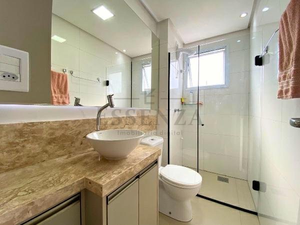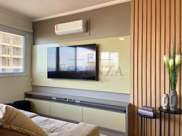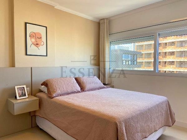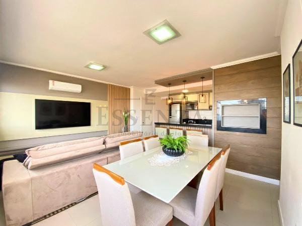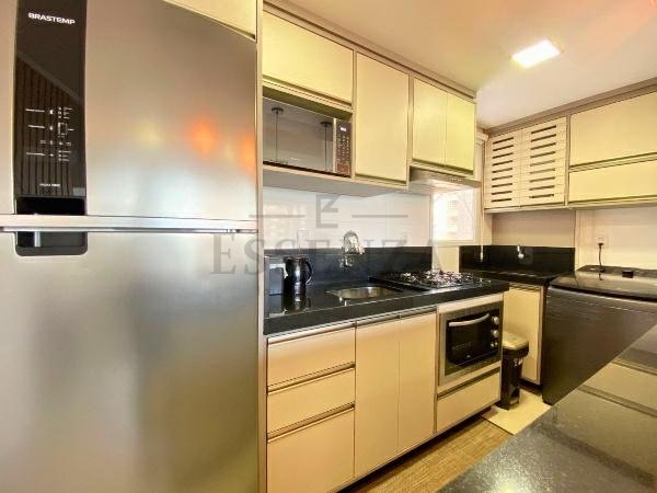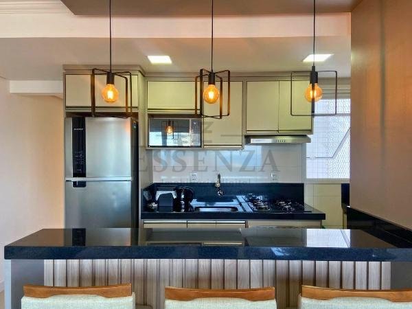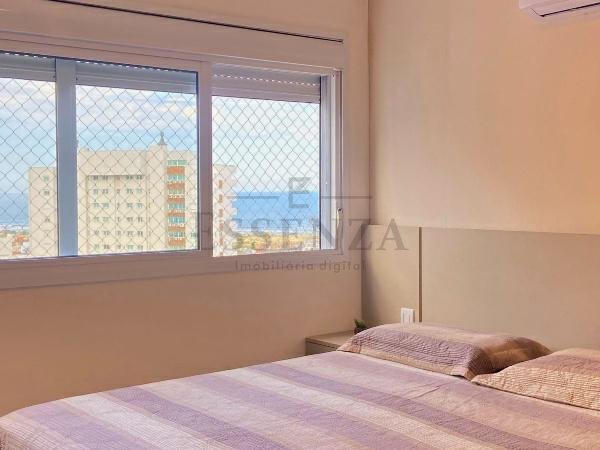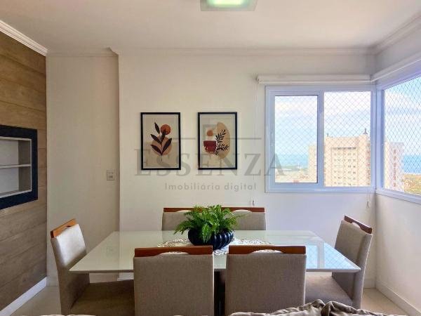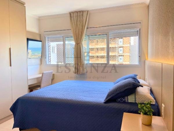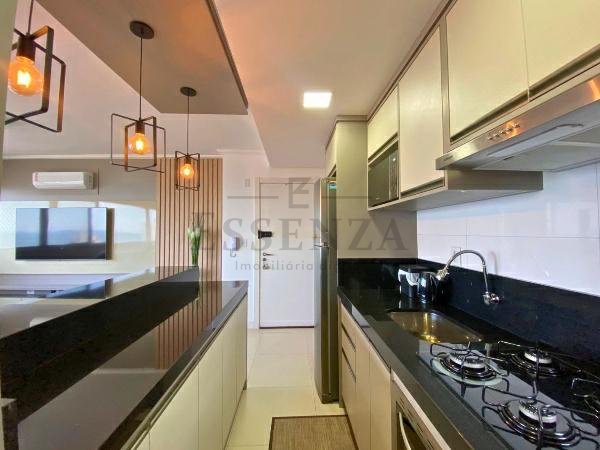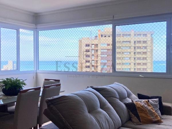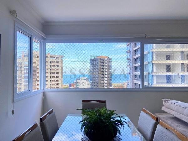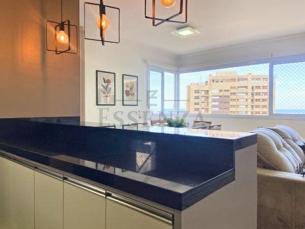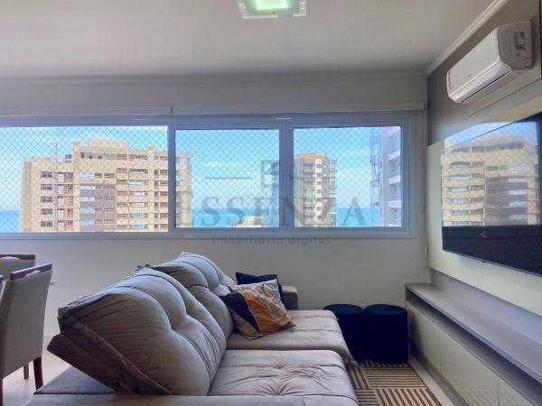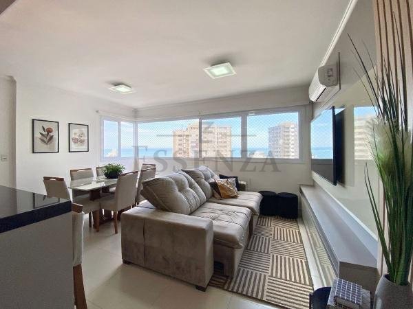 Apto de 03 suítes, mobiliado e decorado, lavabo, cozinha americana integrada, living amplo com vista para o mar, churrasqueira, gás central, consumos individualizados e vaga dupla de garagem.